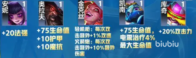 金克丝:轻机枪每次攻击增加额外的1%攻速,火箭炮每次攻击追加额外的10%伤害;