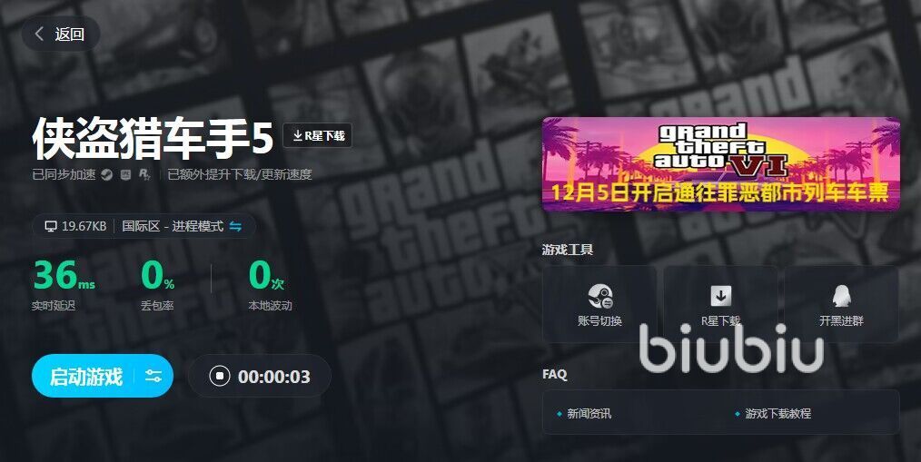 本作无论是单人剧情还是多人模式,在游玩时都要求连接R星的服务器,可以说旗下游戏都有这个要求,所以网络不给力的话不妨试试让biubiu加速器来帮你。专为海内外游戏设计,对市场上的主流作品都可以兼容。