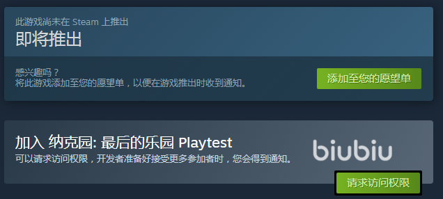 游戏虽然现在没有进行发售,但是steam可以提前免费体验试玩版,有兴趣的可以进入商店将其添加至库,在“请求访问权限”就行了。但是需要注意的是它是不支持简体中文的,所以上手可能会有一点难度。