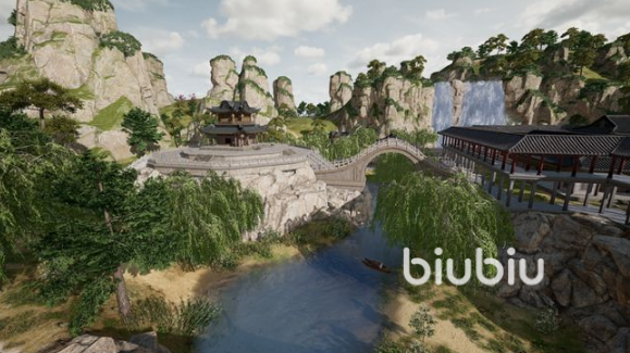 在荣都中,每位中国玩家都能看到自己所熟悉的中式美景,比如在地图中西北方向就能看到成片的竹林,颇有卧虎藏龙的味道。南面的瀑布连着一条蜿蜒曲折的河流,在河流上方则是一座弯弯的拱桥,拱桥旁两旁连接着石山和亭子。乍眼一看,还以为自己误入了某国产仙侠游戏了!除了中式园林,荣都中还有一个八九十年代风格的居民区,这里放眼望去满满的童年回忆,大家在这里还能看到各种荣都开头的商店名称,这波可以说官方真的很有心了。