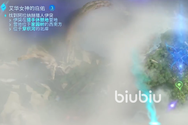 当阿拉纳赫部族家园内显示新的可用任务时,便代表我们接取这个主线任务了。首先要在大地图上找到穿织河这个区域,在区域的北边可以找到家园树的地点。快速移动到这个地点之后我们先走出后门,出了后门之后便可以向西南方的蓝光标志物前进。当系统提示我们到达搜索区域内,便意味着找到伊突所在的一个名为猎手休憩地的营地,在这个区域内我们与前方树木下的猎人来进行对话。