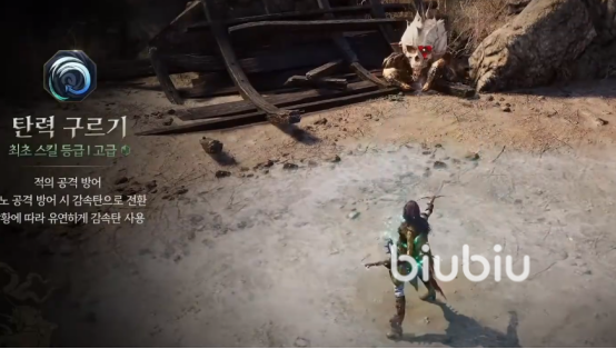 第一个技能持续滚动,可以让玩家躲避敌人的攻击,朝着指定方向翻滚4米,如果范围6米内有敌人会被击退。