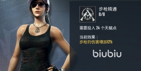 步枪精通:最高8级,总共需要24个天赋点,满级之后可以将步枪伤害增加12%。要知道步枪适用场景极多,所以这算是最好用的一个天赋了。
