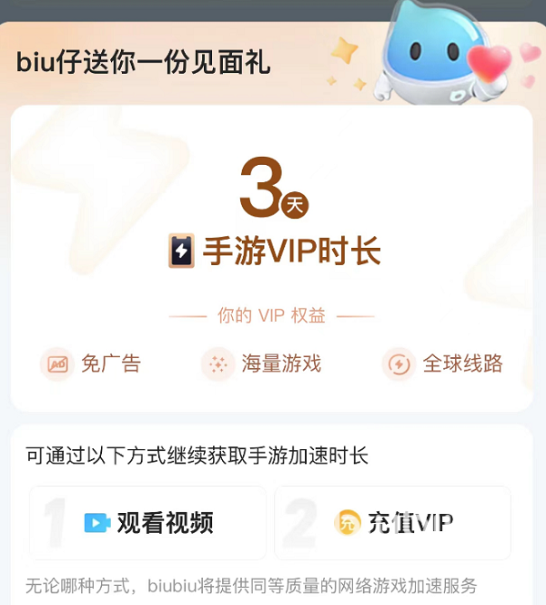 虽然说在这款加速器中可以开通会员去支持一下,从而解锁免广告和无限制的加速体验,但是对于咱们普通玩家来说也可以通过一些途径和方法去享受到免费加速。平台有的时候就会开展一些活动,给我们一些免费加速时长的奖励。大家也可以通过观看视频来获得一些加速时长,平时做做日常活动啥的已经足够使用了,真的是特别良心!