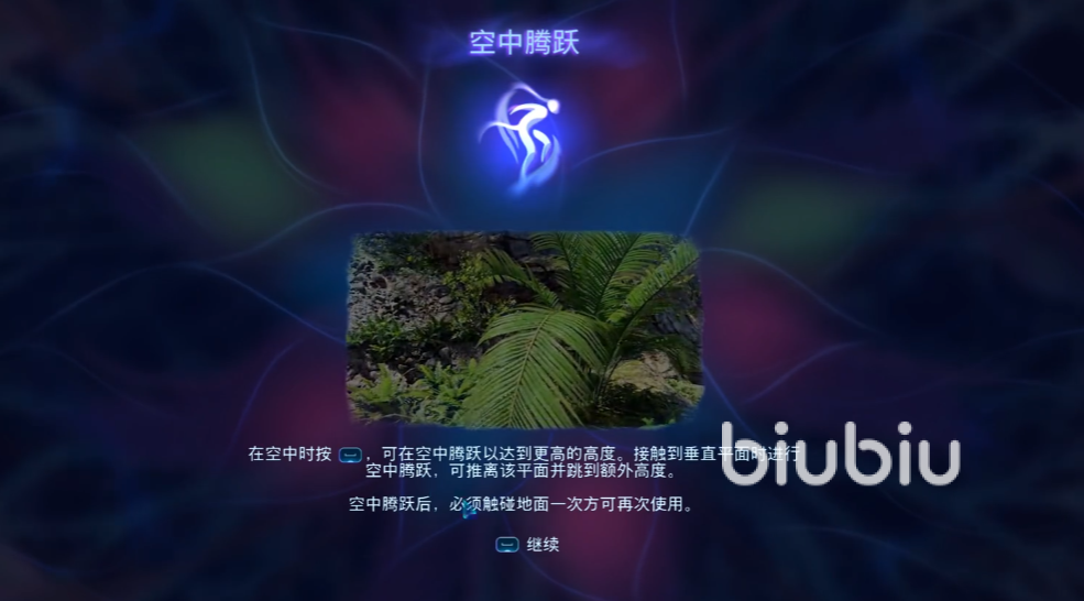 空中腾跃:为了更好的在空中进行移动,习得这个技能之后,人物处于半空中时按下X键就可以进行腾跃,跳到更高的位置。如果接触到垂直平面 ,就能够推离该平面并且继续往上跳额外的高度。注意,空中腾跃之后必须要碰触一次地面才可以再次使用,所以一定要找好落脚点。