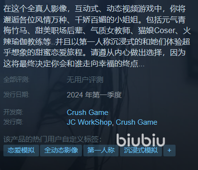 本作是一个主打恋爱题材的真人互动电影式游戏,目前已经确定会在steam平台发布,并且放出了相关页面。虽然没有确定具体日期,但已经标注了会在2024年第一季度推出,目前也可以添加进愿望单。