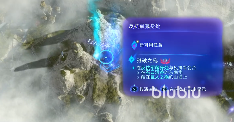 之后我们就可以得知任务的详细内容,前往反抗军藏身处与他们汇合,并且这时的系统会给两个提示。一个是在“石云河谷”的东南角,另一个位置在“巨人之祸”的山坡上,之后大家按照前面提到的内容前,往指定的地点就可以开启过场动画,然后任务就会完成了,后面主角就会跟着他们成就一番大的事业。