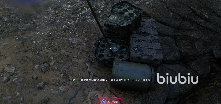 剩下的就是消灭它们了,先吃一个食物以保证脱战可以呼吸回血,然后直接开纳威感知使用重弓,瞄准敌人的弱点将其击杀。即便是机甲也能一招致命,将其歼灭之后再回家园树交任务,到这里就完成了。