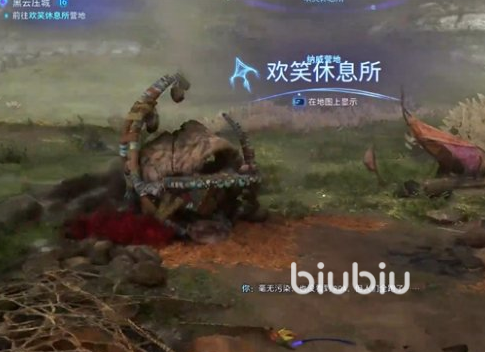 如果看不懂小地图不知道具体的位置也没关系,只要大家打开纳威感应扫一圈,视野中的光点就是玩家需要前往的位置。朝着光点一路进发,很快就能到达目标位置了。大家在这里可以解锁一个新的营地,到这里寻找哀泣台地的任务就结束了。