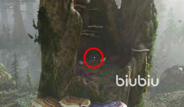 1、找到最大的树,从上方来到树干中心位置,里面有个棍子旁边放着它。