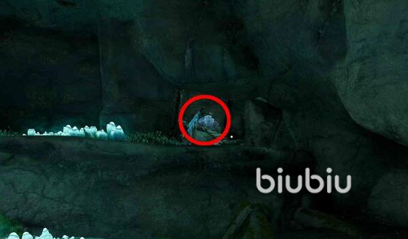 4、在山洞里的那个铃铛草旁边,需要从岩层进入,跳到底部的水潭来到旁边洞,右边是草,左边的洞就是娃娃。