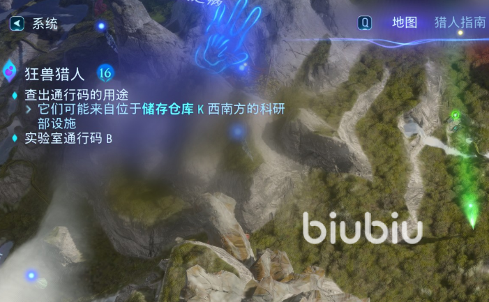 当做到狂兽猎人这个任务的时候,有一个小任务让我们去找通行码的用途,这里提示我们可能来自储存仓库K西南方向,但是很多玩家来到储存仓库k之后,打开地图却发现没找到西南方向的设施。