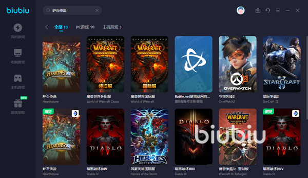 这款游戏还是比较热门的,在biubiu中直接搜索炉石传说就可以看到相关的加速项目,除了炉石之外还有很多暴雪的热门游戏都可以轻松找到,而且biubiu还额外提供了免费的SD版本加速,这在PC端加速工具中还是比较少见的,可见还是很良心的。炉石国际服比较游玩人数比较多的就是亚服、欧服和北美这三片区域,在软件中可以自由选择,推荐大家在下载和加速的选择选择亚服游玩,毕竟有中文,可以更好地了解卡牌效果。