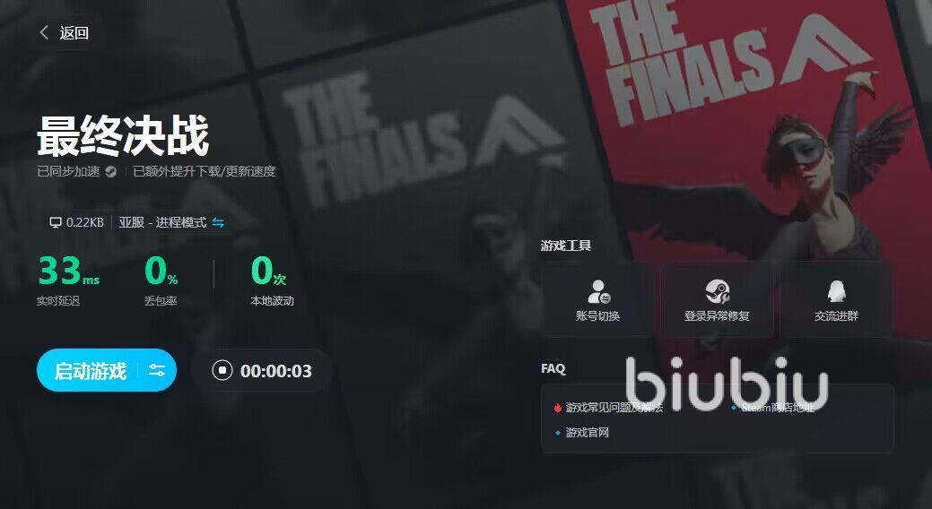 本作目前已经在主机以及PC的steam平台发行,无论你是玩哪一个平台,它都是一个网游,一旦网络拉胯直接连服务器都连不上,biubiu作为致力于带来最极致网速体验的优秀作品,可以帮助大家创造更好的游戏网速环境优化网络效果。