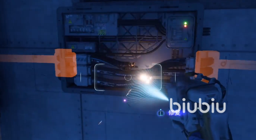 接下来就可以安全降落到补给站了,里面有一些回收装备藏得比较隐蔽,可以使用仪器去寻找,或者开启引导模式,两个轮流来就可以看的比较全面了。当然看到隐藏的线路还是用一样的办法去启动它们,不过这里有两条注意细心一点。