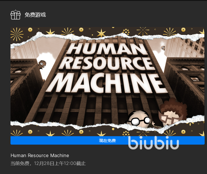 进入到领取的页面后我们可以发现,时间从12月26日的24点至12月27日的0点都能免费入库。成功领取之后如果要快速体验游戏的话,也可以使用biubiu加速器对epic平台和游戏本体进行同步提速。