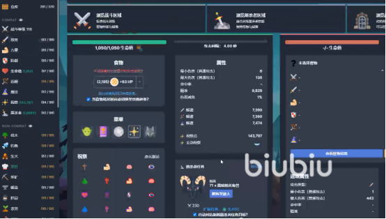 作为一款挂机游戏,主要的游戏内容为战斗和培养生活技能。游戏左侧上方显示的是战斗等级以及相关的属性,比如力量,攻击力等等。下方则是我们的生活技能,主要就是收集、制作等技能,可以采集各种资源,制造武器、药水。对于刚接触Melvor Idle的玩家,可以先完成游戏的新手教程,然后就大概知道游戏的玩法和操作了。