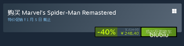 目前冬促是六折优惠,拿下需要248.4元,虽然有点贵但是重制版包含所有dlc内容,若是想化身为超级英雄,拯救一次纽约,就赶紧买起来吧。