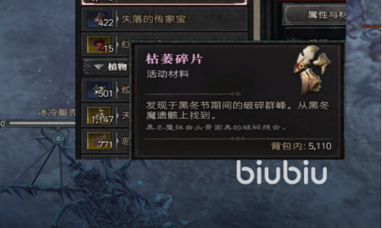 在速刷之前我们需要了解,主要需要刷的物品分别为枯萎碎片,失落的传家宝和红披战利品。这些物品需要在固定的怪物身上才能掉落。枯萎碎片需要从黑冬魔遗骸身上找到,失落的传家宝需要从冰冷的躯壳上获得,而红披战利品则需要从恐怖红披遗骸身上找到。