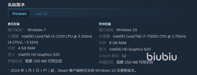那么这款原价40的游戏对于配置有要求吗?根据下图可以看到它对于显卡几乎没有要求,配置拉满CPU也才需要7代的i7-7500u,简单来说就是不吃配置,现在的电脑几乎都可以带得动,所以就不用担心,请放心领取吧。
