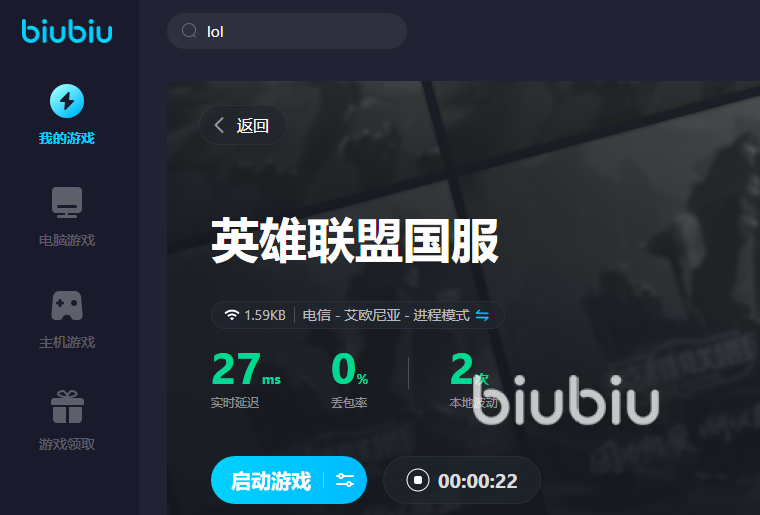 一般出现这种情况,最好用的方式就是使用biubiu加速器来优化网络了,它的电竞专线可以服务于各大网游,帮助大家选取最合适的节点来连接服务器,保证后续游戏过程中一直有稳定且优质的网络。在低延时,高帧率的游戏环境下,可以放心的进行操作了。