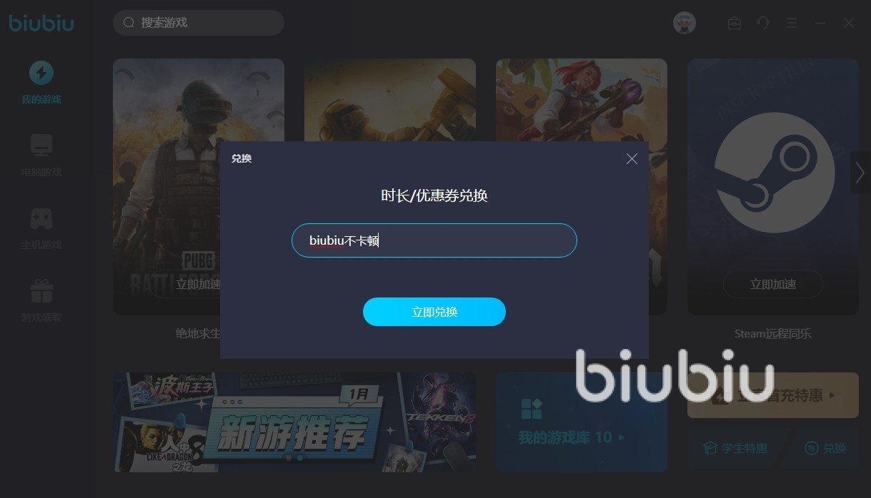 另外现在还有多种活动在开展,只要是新人参与使用biubiu就可以享受24小时的加速时间。要是感觉不够尽兴还有免费的兑换活动,只要输入专属兑换码【biubiu不卡顿】就能在原有基础上另外得到3天的免费加速时长,这个活动不管是新老客户都是可以参加的,千万不要错过好时机了。