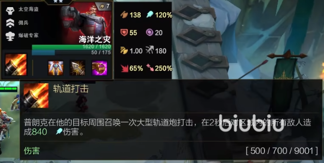宇宙海盗这个种族就意味着他的伤害是爆发性的,一旦释放技能,目标区域会受到持续2秒的伤害,分别是500/700/9000的魔法伤害。