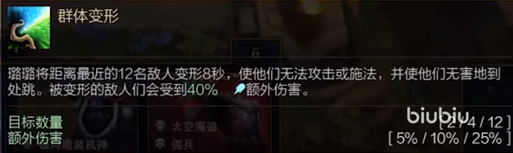 种族是天人,加上本身输出跟控场能力都不错,尤其是技能释放的时候可以让周围的敌人变形,并且持续时间长达4秒,这样强大的控制能力能保证有一个不错的输出空间。但是技能释放的时候也有不良效果产生,就是角色没有办法施法或者普攻,并且受到的伤害还会提升,所以最好队伍有抗伤的前排。