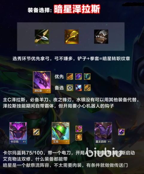 泽拉斯:8人口的时候就使用他,可以带来不错的输出,当然优先装备分配给他。因为当前版本回血机制还是很强的,加上护盾效果也多,结合他的属性是可以发挥出来最大的作用的。