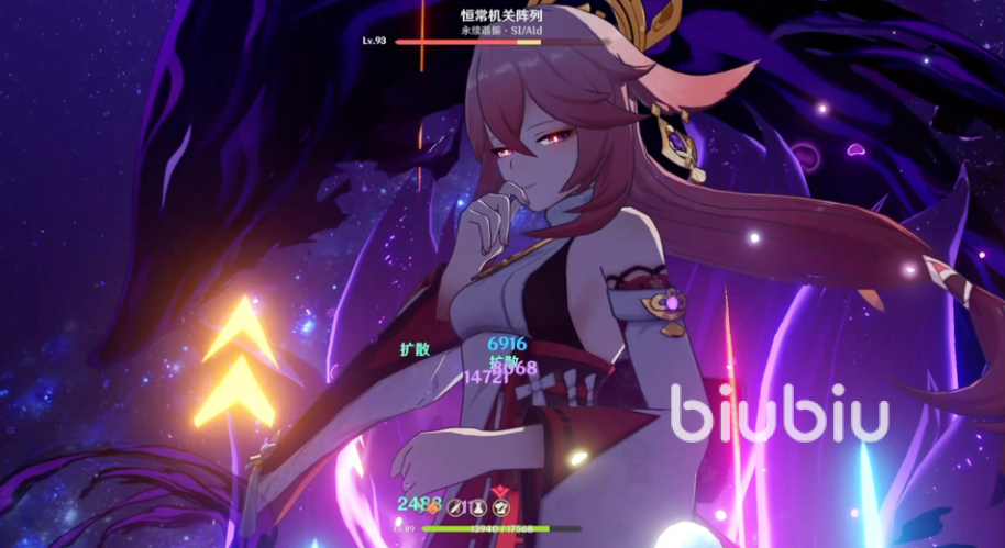 元素爆发时八重神子会暂时显露自己的狐尾,并降下雷霆造成伤害,此外还会摧毁附近的杀生樱,每摧毁一株就会额外降下一次雷电。值得一提的是八重神子似乎不太愿意露出她的尾巴,其元素爆发需要90能量在游戏中简直是前所未见,身为充能困难户的她在深渊的出场率似乎不是很理想。