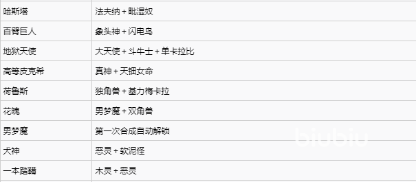 图中有一个名字算得上大名鼎鼎了,那就是蚩尤,它的效果也不错,主动修罗的本能在打到敌人的时候可以恢复30%的HP。另外的继承可以选择伏击,只要对手进入特殊范围,就可以对他们进行射击,而特殊敌人以外的单位就会停止行动,这有一定的控制效果,用起来还是不错的。不过合成它的代价比较大,需要的角色比较多,分别是白骑士、百臂巨人、托尔、库夫林以及义经这几位,前期不建议大家花费这么大去获得他的。