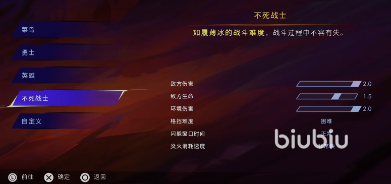 本作并不锁难度,玩家在第一次开始新游戏时,画面就会弹出难度选项。一共分为五个档,其中一个是自定义难度,默认难度为勇士,最简单为菜鸟,而最难则是不死战士。如果你不想花费太多精力在该作上,默认的勇士难度就够了。