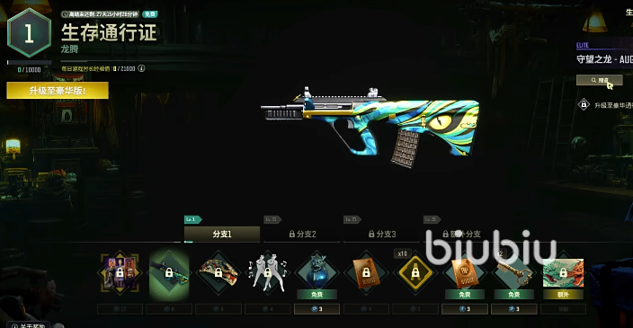 当然了如果你不想花钱的话,不同分支里面都准备了一些免费的奖励,它们有枪上的装饰配件、15000的BP奖励、钥匙碎片、400聚合物、宝箱、舞蹈动作、黑货票券(可用于抽奖),凑合着用用也还是可以的。