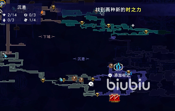我们需要先前往沉港,它的具体位置在下城区域的右下方,在地图上的颜色为紫色的区域,到达以后有个平台大家需要爬上去。然后击碎墙壁进入里面就可以看到一个箱子了。