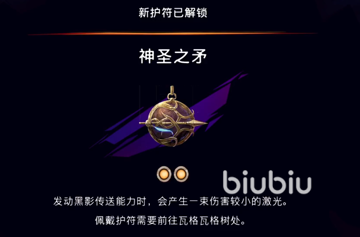 通过平台跳过去之后就能开启宝箱,到这里大家就可以获取神圣之矛这件护符了。