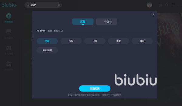 值得大家注意的是,虽然战地5支持跨平台的联机,但其实游戏分为了不同的区服,如果是和好朋友一起游玩,需要我们统一区服。Biubiu加速器支持的版本就比较齐全,目前比较热门的港服日服不在话下,连相对小众的澳服和新加坡服等也都支持。