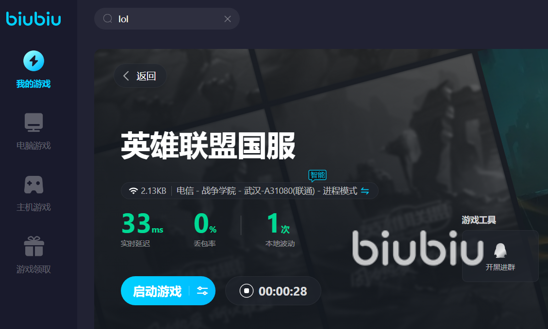 前面咱们提到了英雄联盟很少有掉帧卡顿的情况产生,这是因为什么呢?因为英雄联盟这一款游戏对电脑配置的要求非常低。小编也是一位英雄联盟老玩家了,不夸张的说,小编4年以前使用的旧电脑现在还能完美的运行英雄联盟。可见这一款游戏是真的一点也不吃配置。那么排除了配置问题,掉帧卡顿的源头其实已经很明显了,没错,就是因为网络原因。很明显,是网速不稳定导致的网络波动引起了游戏的掉帧和卡顿。那么解决办法是什么呢?其实解决办法也很简单,小编这里推荐大家使用biubiu加速器来加速联盟运行。