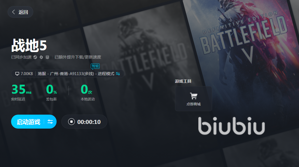 嗯,介绍到这里就差不多了,剩下的大家可以亲身在游戏中体会。由小编给大家讲述是无法体验到游戏的快乐的。下面小编主要和大家聊一聊如何解决战地5的游玩过程中延迟高的问题。其实小编亲测的过程中使用了好几种办法来解决延迟问题,这里给大家推荐最有效最简单的一种,使用biubiu加速器。