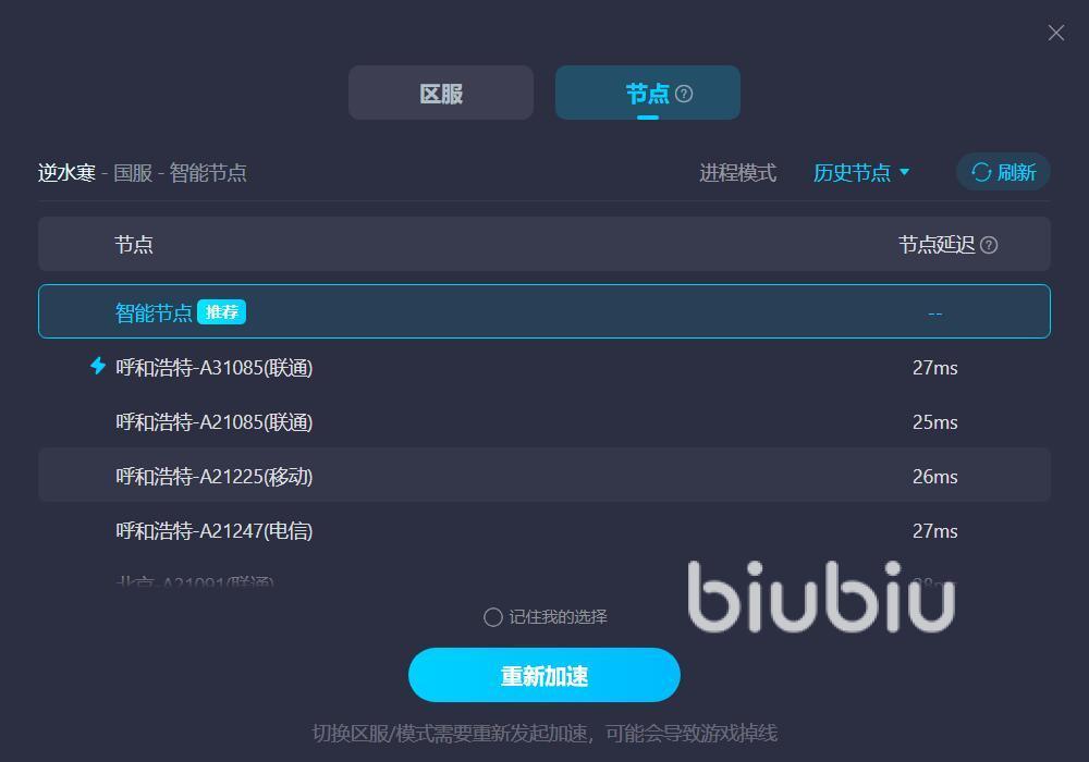 以上就是逆水寒加速器用哪个,高清的游戏画质,以及精美的场景设计,给人带来一种舒适的观感,如果你想以更流畅的状态,去体验这个游戏的话,不如试试biubiu加速器。