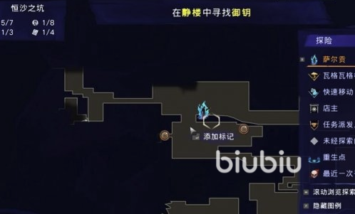 大家首先要来到恒沙之坑,具体位置见下图。来到这里后可以看到一颗树,从这棵树的左侧往下跳,到达底部后一直往右走。大家在路上会看到一块能量石,击碎之后立即返回左侧,随后借助能量石的力量打破左侧的墙壁。