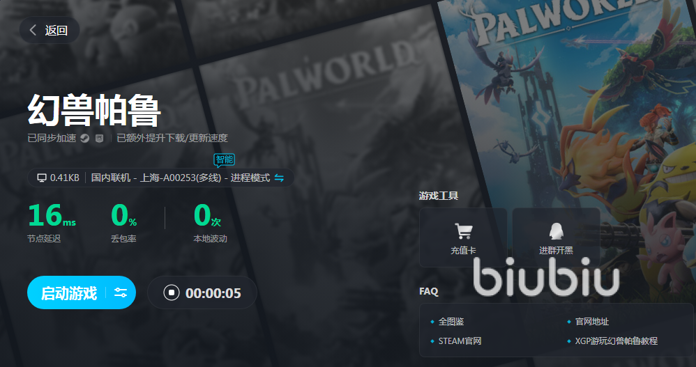 此外biubiu可以对幻兽帕鲁游戏和其平台进行加速,使用兑换【biubiu不掉线】可获得3天的免费加速时间,新老用户都可以使用哦!新用户注册可直接再获得24小时加速时长,配合兑换码使用共可获得96小时免费加速时长的福利。