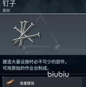 在获取到铁之后大家要使用炉子进行冶炼,然后就会得到金属铸块。这里再把金属铸块拿到工作台上进行加工,最终就能得到我们需要的钉子啦。