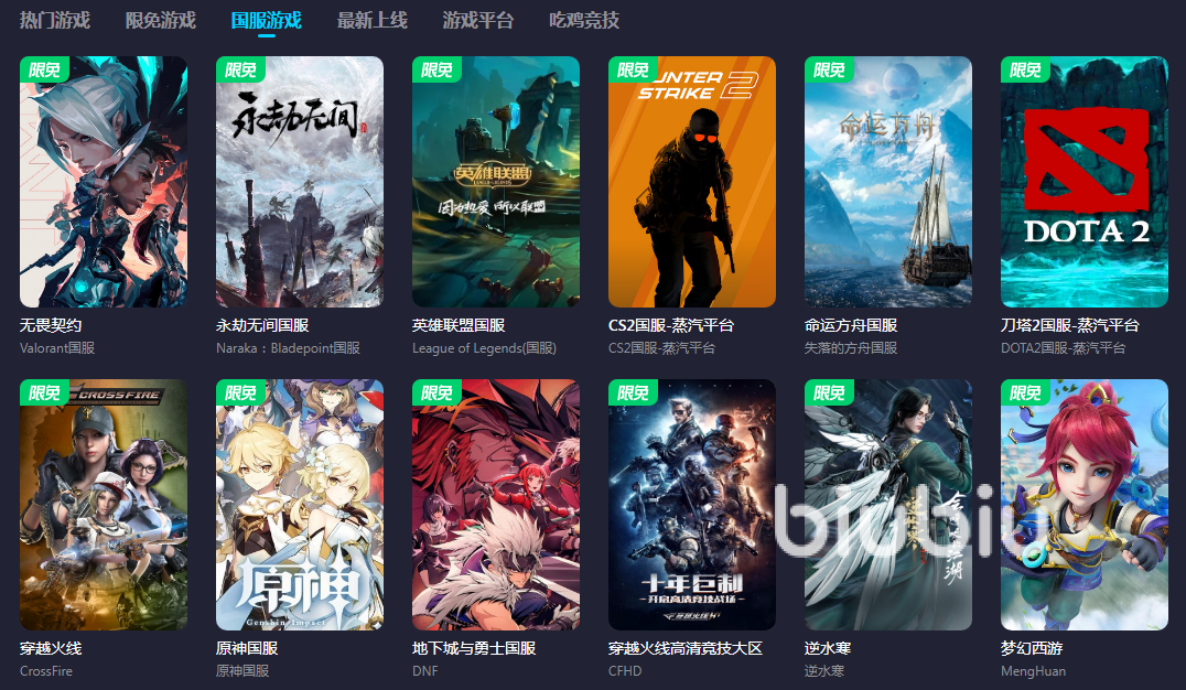 就算平台会员到期或者是体验到期,大家还是可以用它来玩游戏的。平台不定期就会推出限免游戏,这些限免游戏不需要会员也能免费加速,大家点击游戏库里的限免游戏和国服游戏就能看到哪些游戏现在正在进行限免。