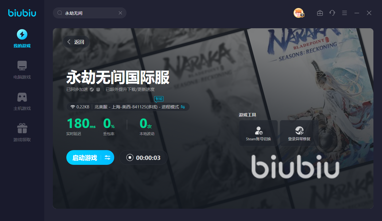 想要更好的解决永劫无间闪退怎么办。可以运行biubiu,便可极大程度的优化网络,让你放心的游戏,然后根据自己的操作技巧,将所有的技能攻击打出来,便可战胜一路上遇到的对手成为武林之主,也能在朋友面前大展身手,倍加有面子,而不是瑟瑟发抖。