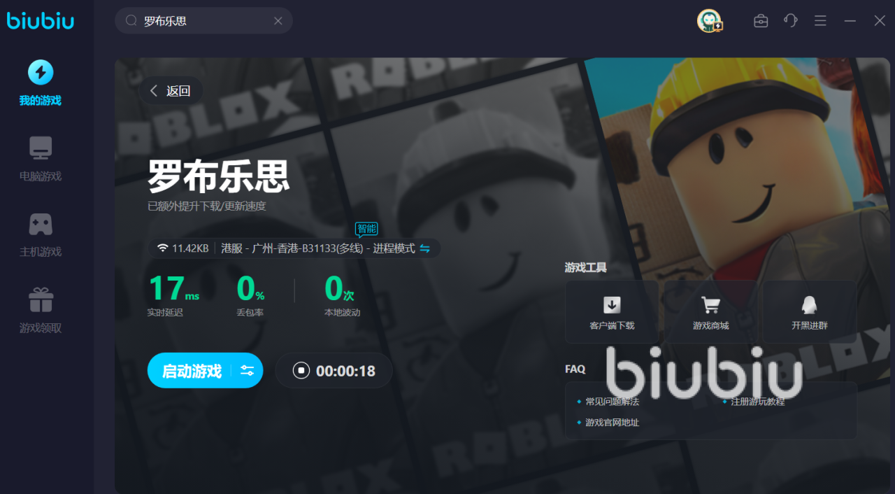 之所以大部分的罗布乐思玩家选择使用biubiu加速器,是看上其强大全面的游戏加速功能,还有多种游戏贴心服务,新手用起来也很方便。大家只需点击上方链接下载安装好biubiu加速器,主页搜“罗布乐思”,添加到自己的游戏库中,即可方便地一键点击加速运行,打开无需额外的操作,智能模式下可以帮你选择最适合网络环境的节点与通路进行加速,进游戏保持在后台运行,不会有过多存在感。对于罗布乐思这种跨服跨区、与全球伙伴一起玩的游戏来说特别好用,可以轻松帮你解决国内网络传输不稳定的困境,体验稳定流畅飞一般的搭建手感。