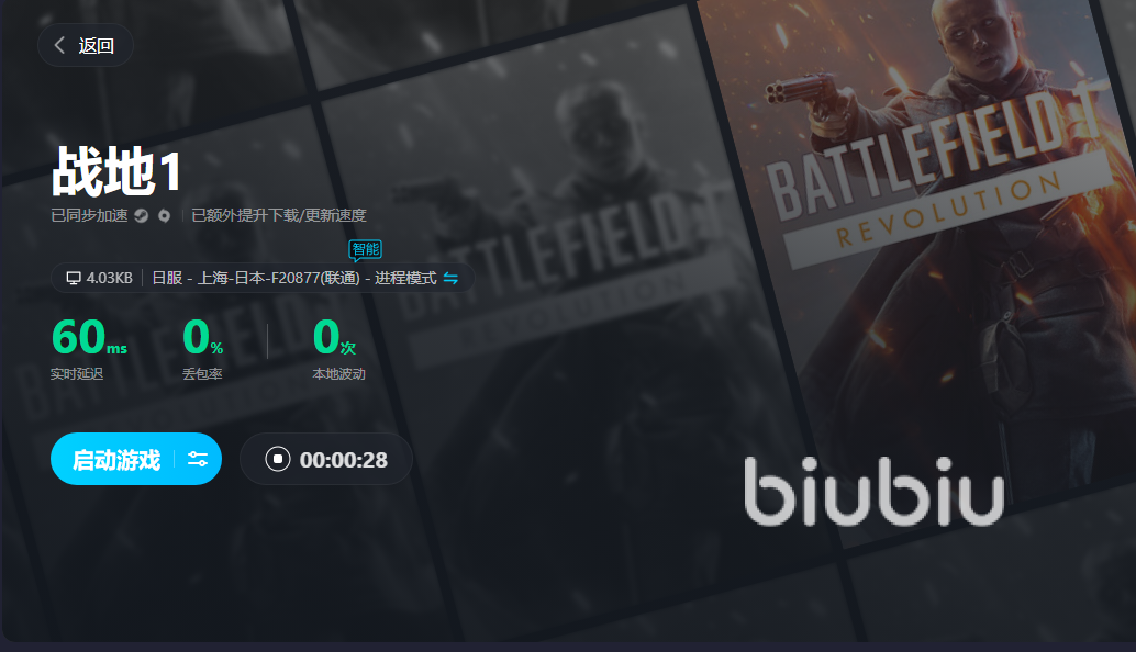 首先,Biubiu加速器能够为战地1玩家提供低延迟的游戏连接体验。战地1身为一款优秀国外游戏作品,国内玩家在进行游戏体验时,往往会遇到卡顿、延迟高这样的问题。使用Biubiu加速器可以显著降低延迟,提升游戏流畅度,让玩家在战斗中更加自如。