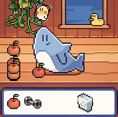 游戏的核心玩法有点像小时候的电子宠物,基本的操作就是用鼠标点点屏幕,甚至连键盘都不需要,你可以跟着流程与小鲨鱼进行互动。点击进行喂食让它慢慢长大,你与它的互动过程会直接影响到结局的表现。