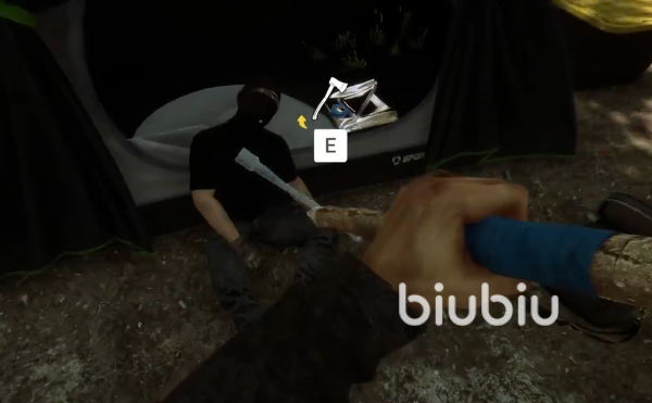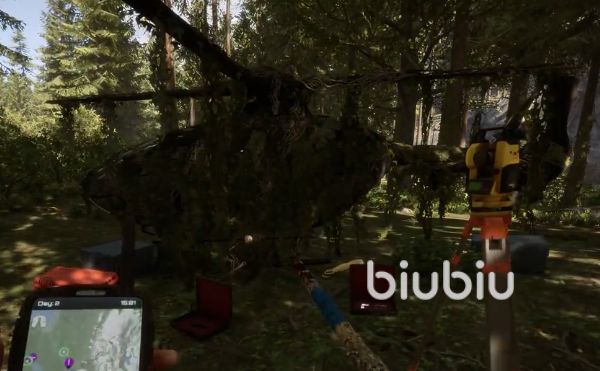 之后在雪山的附近我们寻找一条河流,然后往河流的下方去寻找一个洞穴,找到洞穴后在它的附近会出现一个营地,营地里面我们可以获得现代斧。存档后打开地图我们来到最左边的海面上,在离岸边不远住有个紫色的标点,那里可以获得手枪。在附近会有几段河流,我们来到第四段河流下方的一片小湖泊区域,在那里会有一架废旧的直升机,我们进行搜索可以获得手枪导轨。拿完手枪此时天快黑了,这时可以拿出篷布往地上一铺再用木棍支起一角存个档睡一觉。