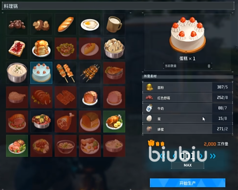蛋糕在解锁料理锅之后就可以制作,玩家需要先用火焰系的帕鲁点燃锅,接着就能烹饪各种各样的食品了。你只需要把面粉、红色草莓、牛奶以及蛋和蜂蜜放在锅内,合成之后就能得到“蛋糕”,你可以自己吃也能用牧场配种。