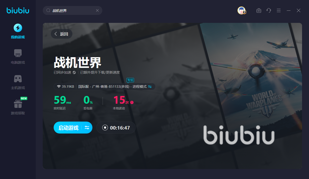 虽然是一款重视格斗体验的游戏,但是在背景场景设计方面依然非常用心,精心刻画了很多战机的真实特点,这在建模时候就会变得很精美。游戏中场景制作也非常逼真,飞机经过的路线上,各种山脉、海洋、瀑布以及其他等方面都做得非常好,让玩家有身临其境的感受。另外在音乐音效方面的搭配也非常应景,尤其是各种飞机的引擎声,枪炮声等,都能展现出各自特点,这些在现实世界中都有原型,也正是因为有了如此认真的设计,才能赢得用户一致好评。但是在激烈对战的时候,容易出现闪退或者直接登陆失败的问题,却成为困扰玩家的头号难题,其实这些都可以利用biubiu加速器来解决。